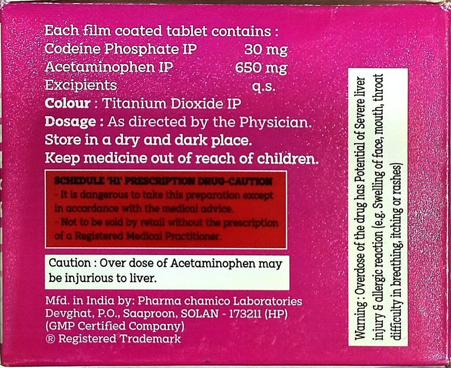 Used for the treatment of pain relief