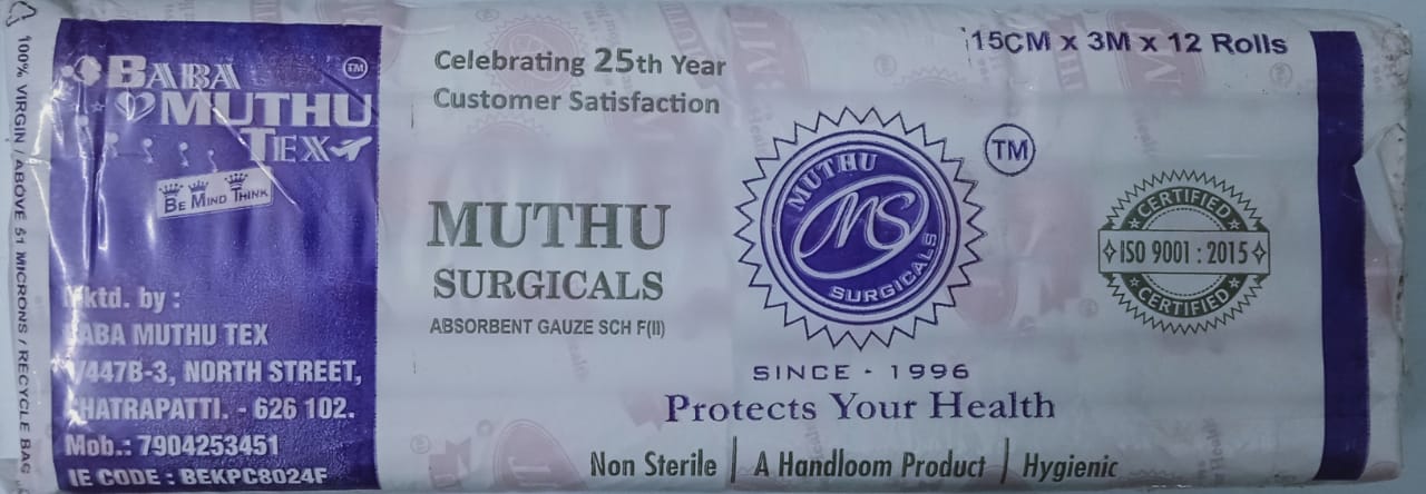 Muthu Surgicals Absorbent Gauze(15cm x 3m x 12)