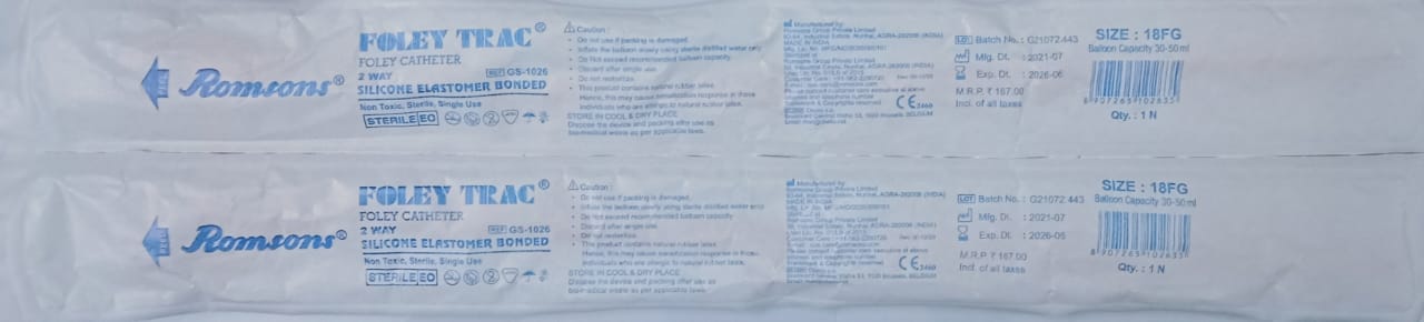 Romsons Foley Trac 2 Way Foley Catheter (18 FG)GS-1026)1`s