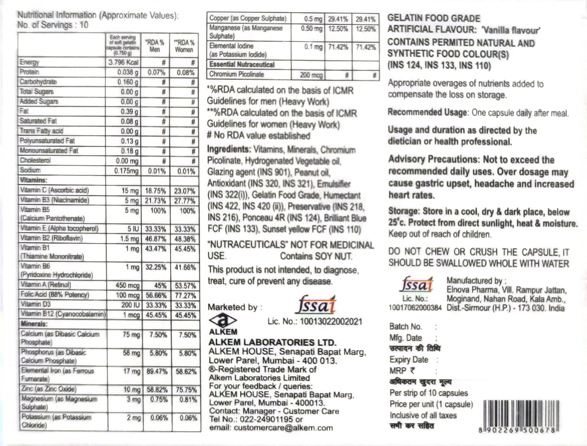 Treatment of Vitamin and mineral